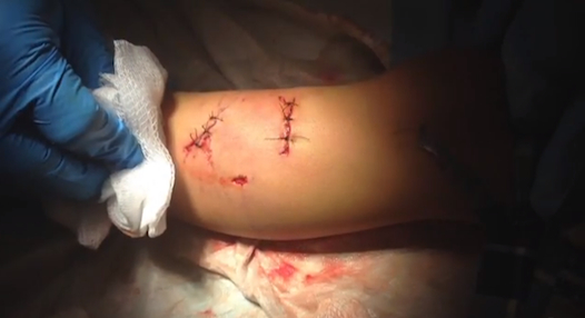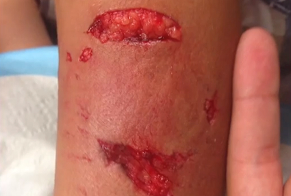 Jeremy suffered bite wounds and required several stitches, but is otherwise okay.
