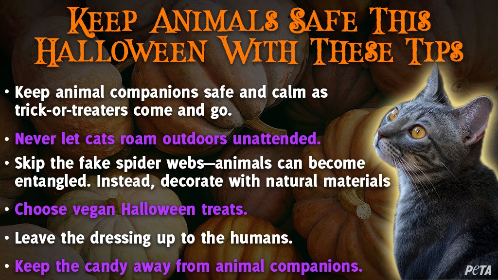 “Here are some animal-friendly tips to share to keep the holiday from turning into a real-life horror movie,” the group said.