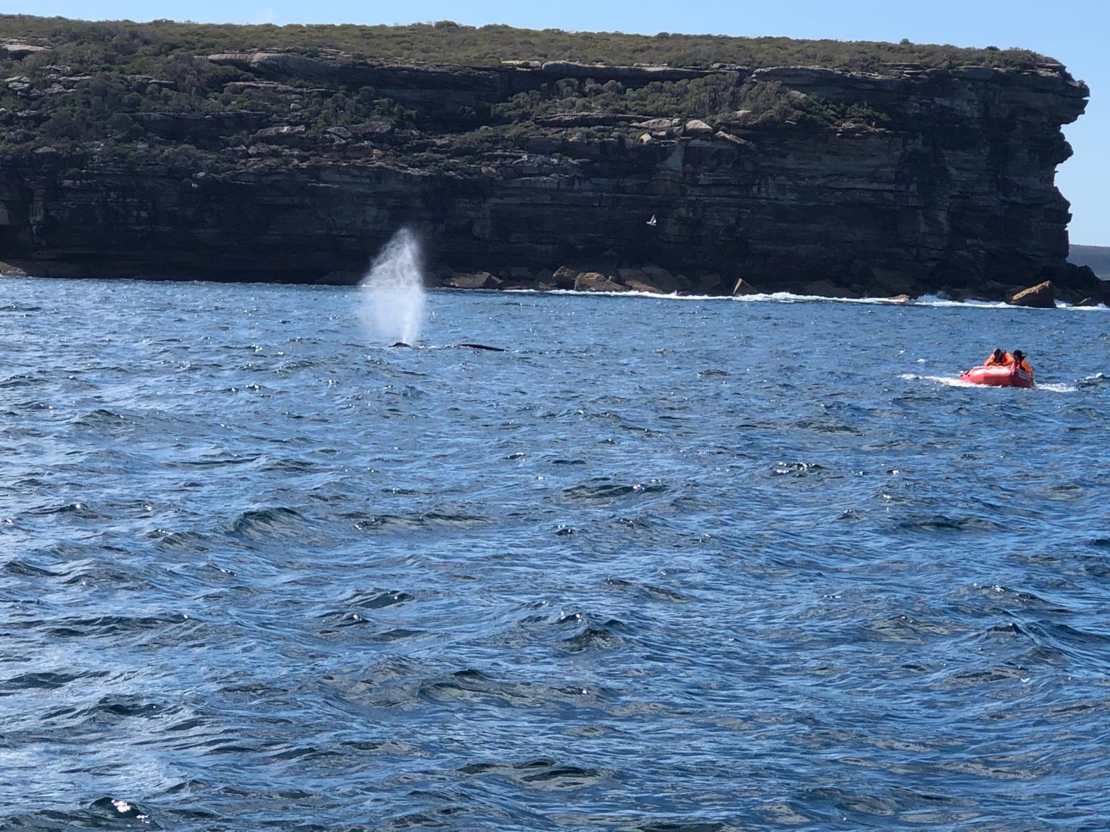 The whale was spotted Monday morning struggling off Wattamolla Beach in Royal National Park.