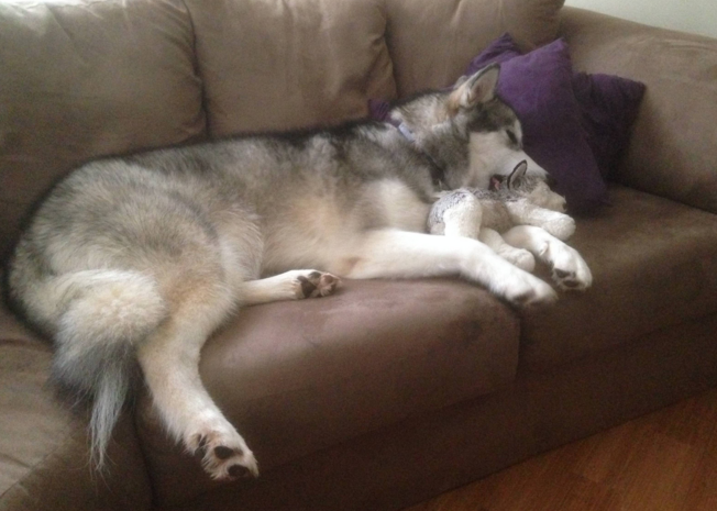 Karissa Lerch, of Durham, North Carolina later explained to Buzzfeed that Luca, a 1 year old Alaskan Malamute, has destroyed every other toy she’s owned.