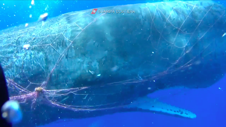 The scale of the problem became clear this week as the coast guard shared a video of divers working to free a sperm whale ensnared in old fishing net off the Aeolian Islands.