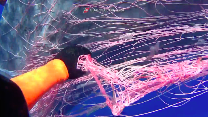 Since January, the coasts guard said more than 100 kilometres of fishing nets have been seized in the southern Tyrrhenian Sea, part of the Mediterranean Sea off the western coast of Italy.