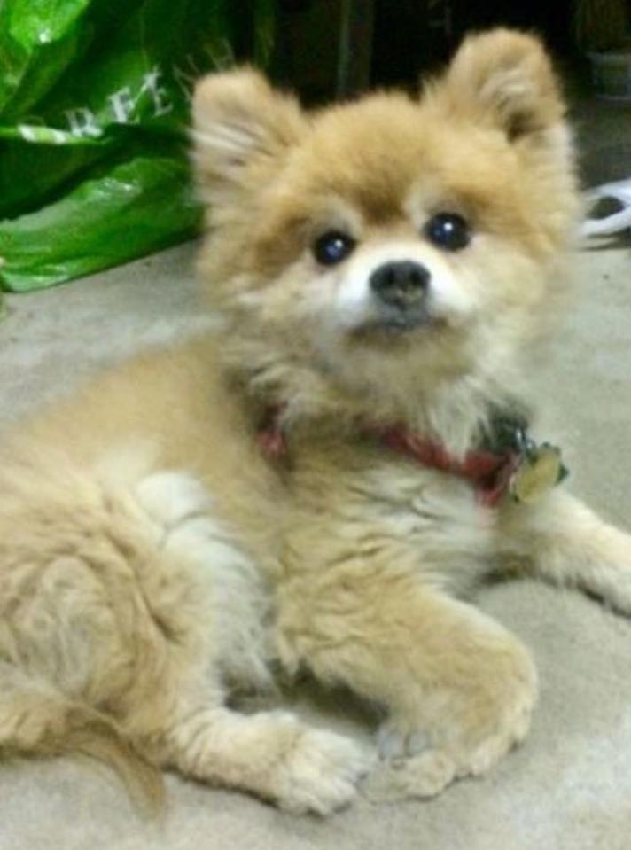Thunder is described as a tan-coloured Pomeranian. He was wearing a leash and harness with serial numbers on his tags.”