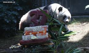 To celebrate Jia Jia’s birthday, the oldest-ever giant panda in captivity, got a towering birthday cake made from ice and fruit juice.