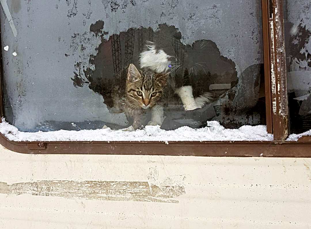 It looks like these cats may have been living alone, locked in that motorhome, for more than five weeks. They survived by licking moisture from the ice that had formed inside the freezing cold space. There was no food or water to be found.