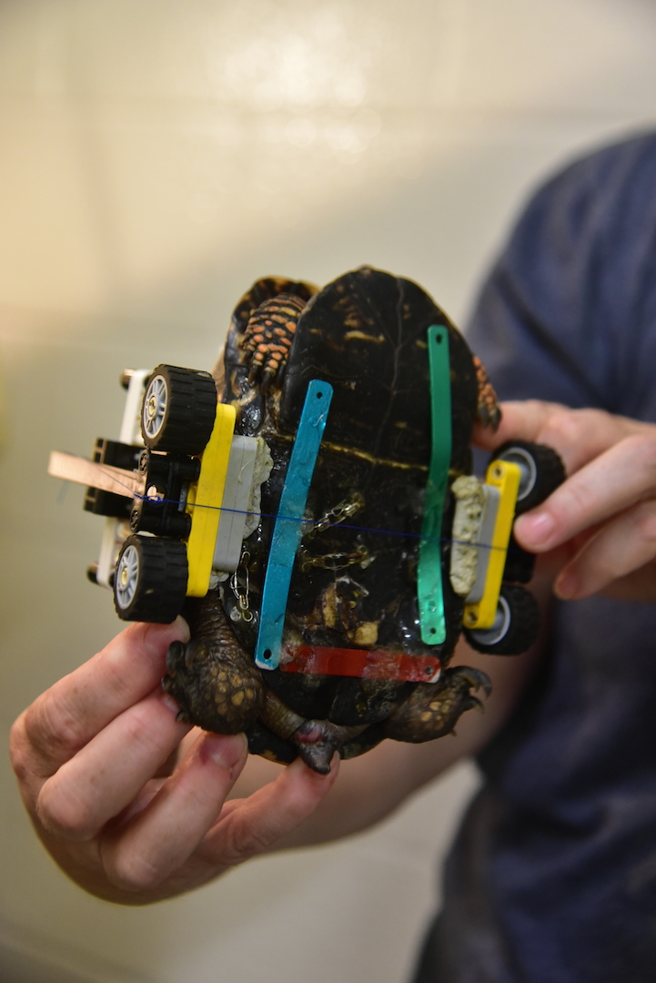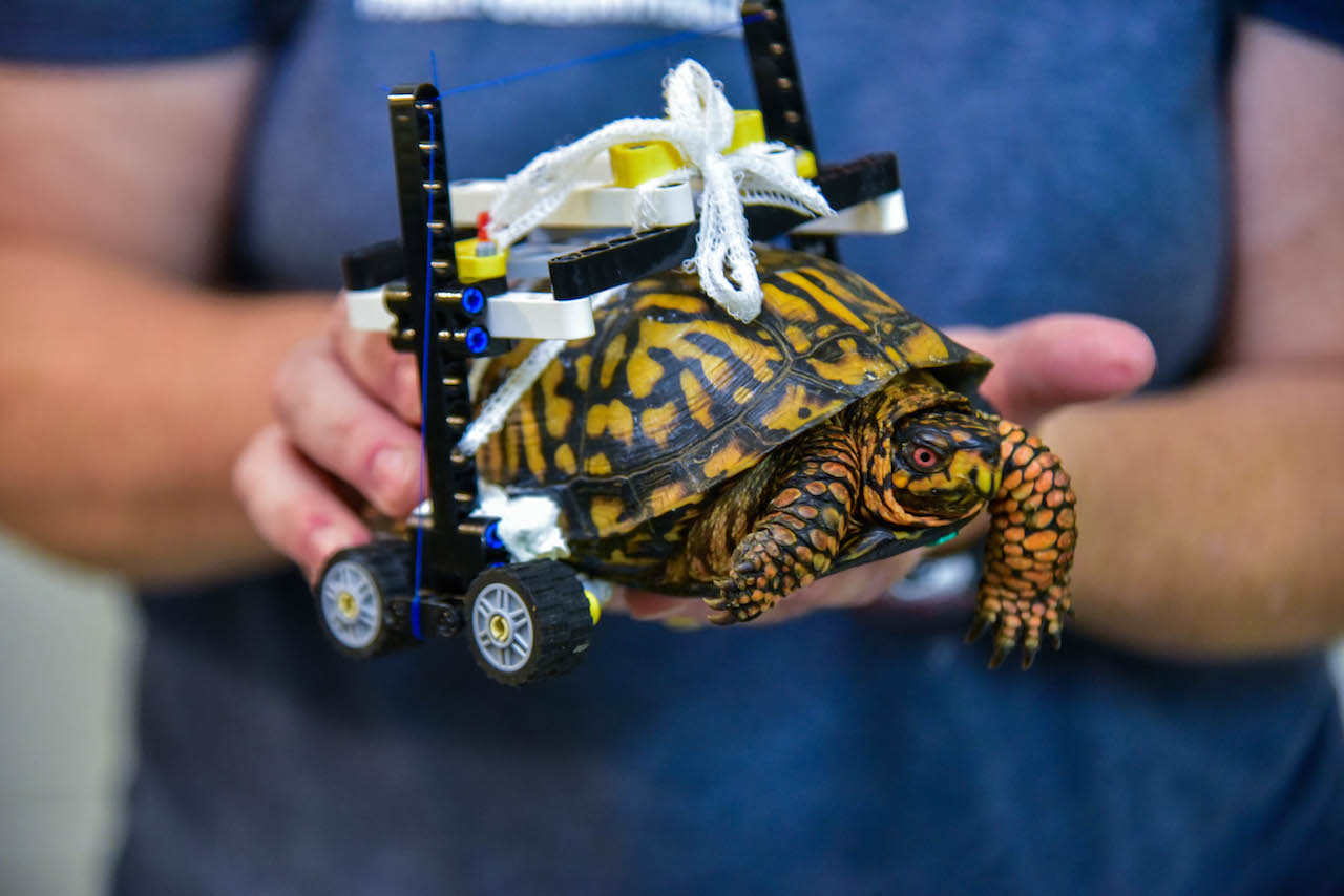 “They don’t make turtle-sized wheelchairs. So, we drew some sketches of a customized wheelchair and I sent them to a friend who is a LEGO enthusiast,” Garrett Fraess, a veterinary student at the Zoo, said in a statement.