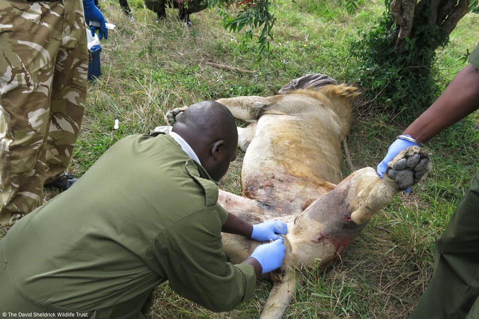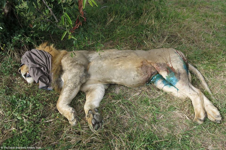 A veterinary team managed to treat this lion’s serious wounds. DSWT/Facebook