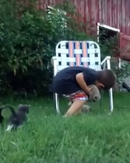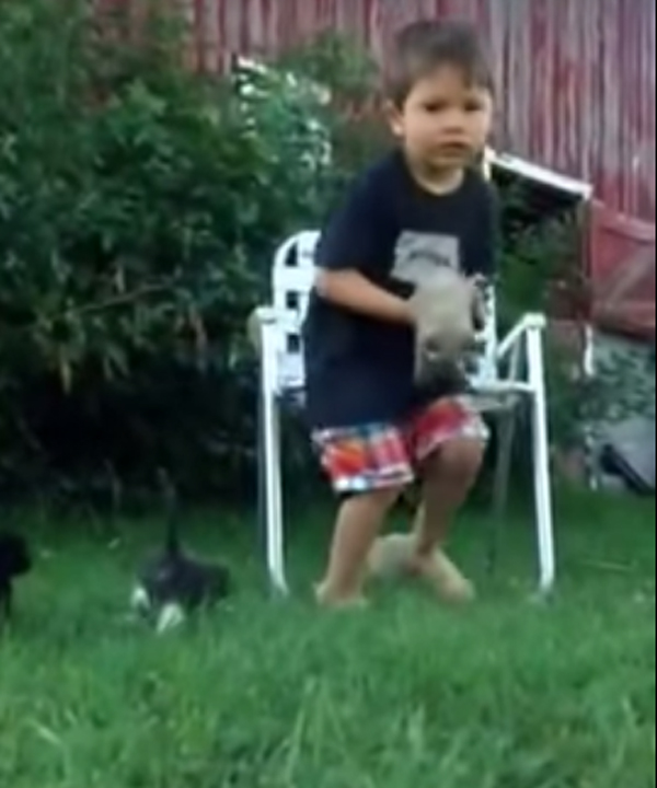 Little boy learns how tough (but adorable for us viewers) it is to herd cats