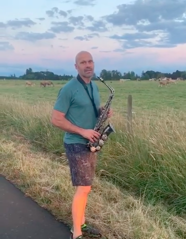 “I’m better at coaching fitness and nutrition than I am at playing the saxophone but I’m learning. I started playing the sax 7 months ago,” Hermann wrote on Instagram last week. “I find it helpful to play in front of a large audience.”