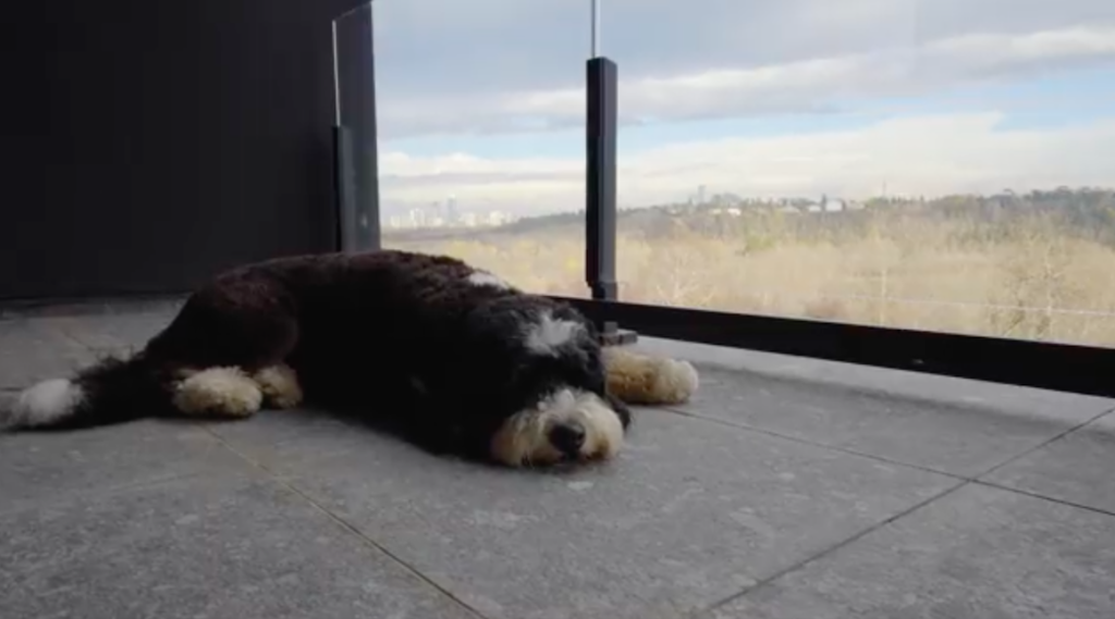 The dog spends a lot of time on the patio, where the McDavid likes to unwind after a game in the hot tub or just outside at the dog park, which is in view.