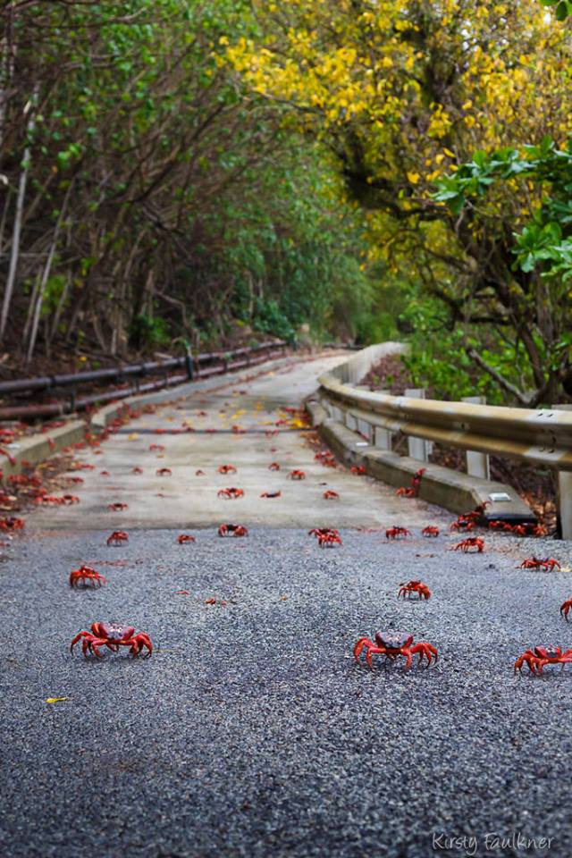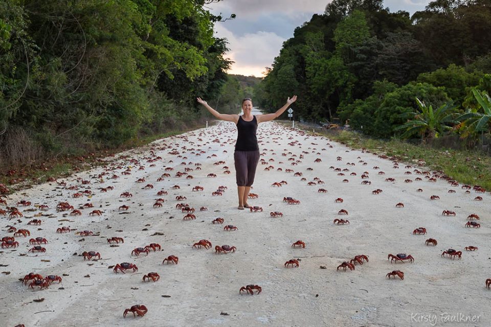 And, photographer Kirsty Faulkner has been documenting the trek of the Santa Claus-red crustaceans ever since she, and her husband, Jon, arrived on the island more than seven years ago. It is considered the world’s largest land migration of crabs as the little gaffers are focused on one task: laying their eggs near the Pacific Ocean.