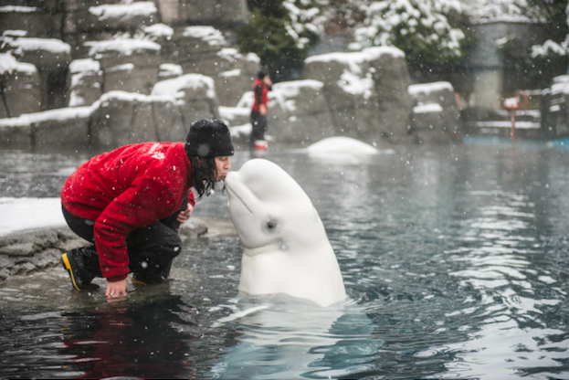 Officials slowly — and carefully — helped guide the young moose out the door.