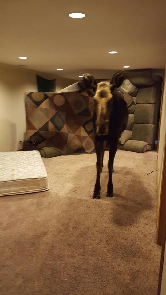 Wildlife must have a thing for rec rooms. Because according to East Idaho News, a moose wandered into another basement in the community just 96 hours earlier.