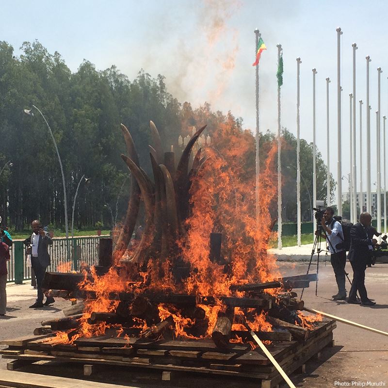 Tonnes of confiscated ivory piled high and then torched. Stockpiles around the world are being destroyed in a bid to save the iconic species, already well on the way to extinction by rampant poaching.