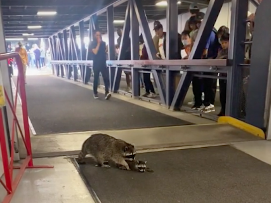 One such super hero mom moment was captured on video this week in North Vancouver, B.C. by TikTok user @cynthiarobbyn as she spotted a helpless baby raccoon splayed out on a SeaBus walkway as it was rescued by its mother.