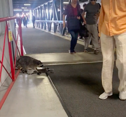 “Walking toward the Sea Bus a baby raccoon dropped down beside me from above & for a bit I thought they were really hurt,” Cynthia Robbyn posted on the social media platform Sunday.
