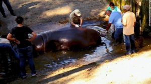 The 15-year-old hippo suffered “multiple blows on different parts of the body” from “blunt and sharp objects” in Wednesday’s attack, the Ministry of Culture said in a statement.