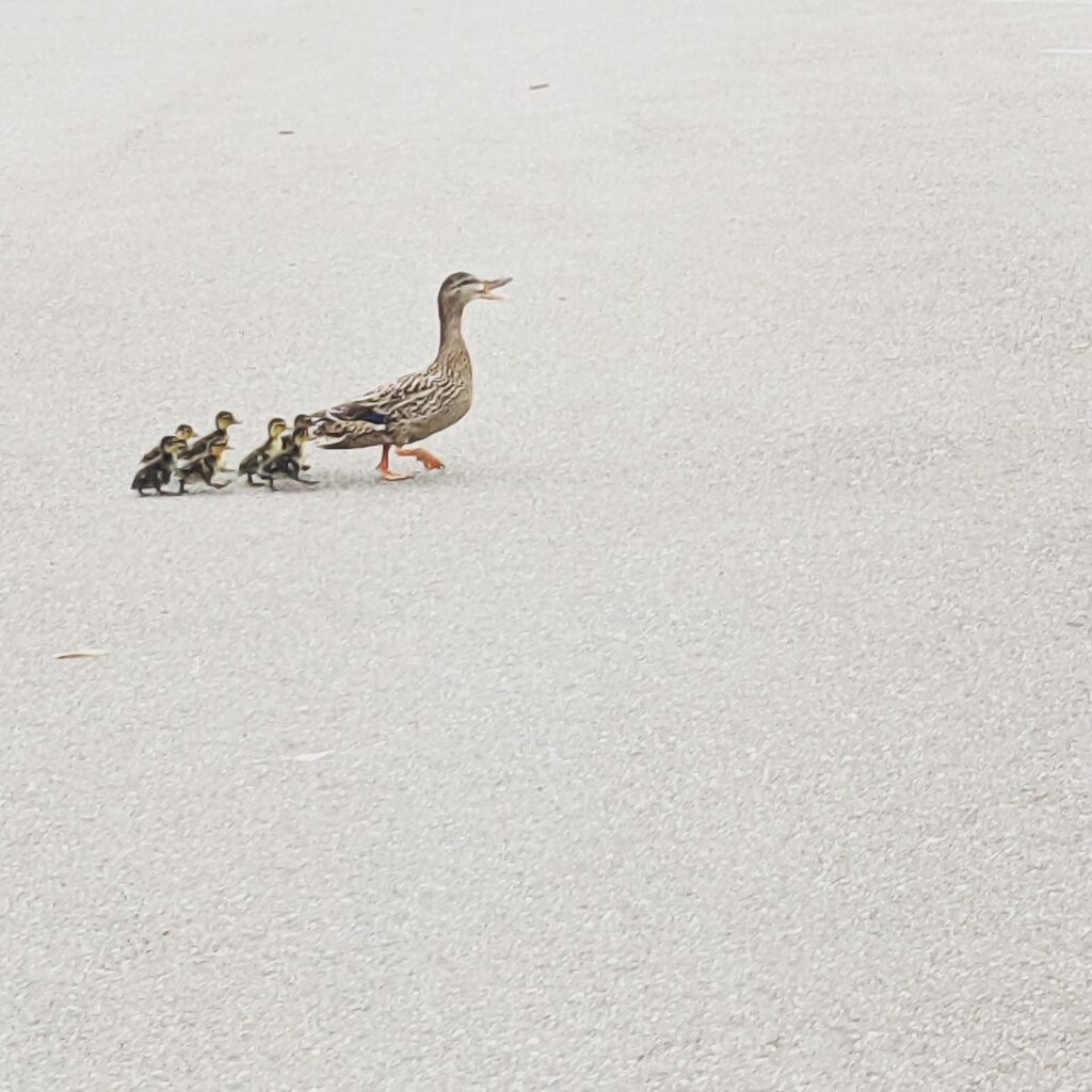 She played mama duck sounds from her speaker to draw them closer to her.