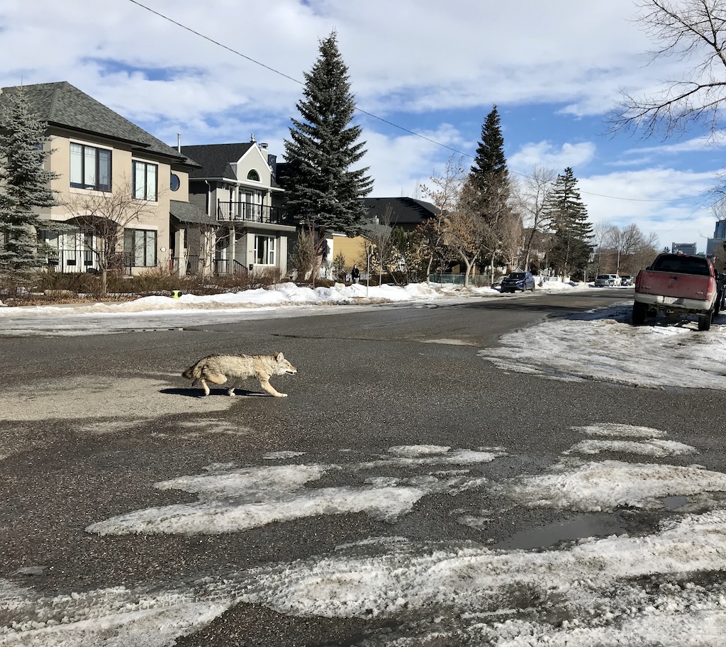 But here’s an urban coyote in Calgary making the neighbourhood rounds this winter.