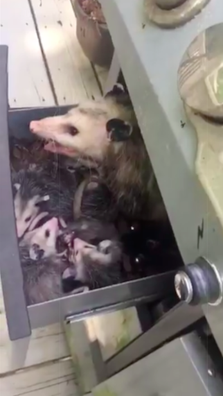 Opossum family moves in to family’s grill in North Carolina