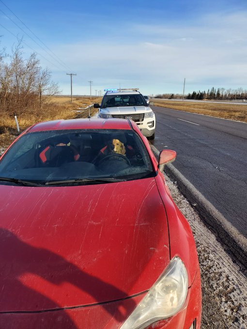 The dog’s owner, the driver of the car, was stopped for impaired driving.