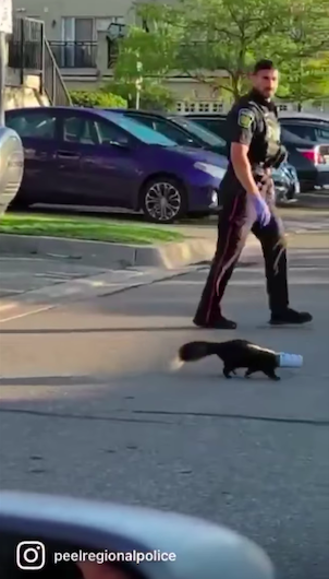 But Peel Regional Police, just west of Toronto, came to the rescue of the little stinker with a cup jammed on its head. And, another officer captured the entire ordeal on video, which was posted to social media this weekend.