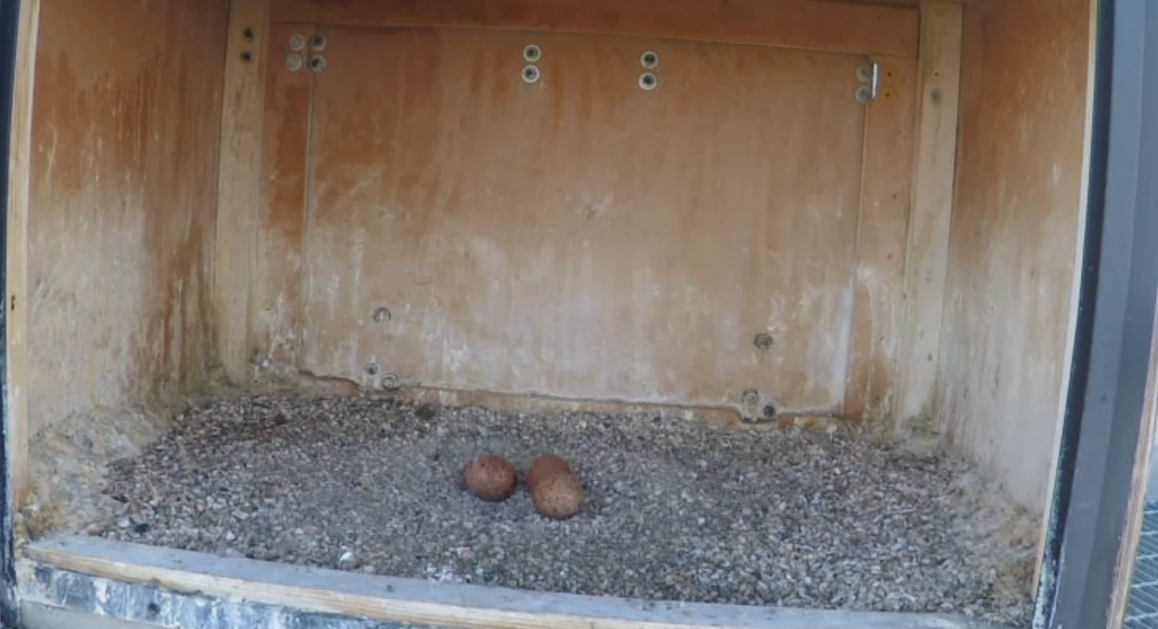 But there is an egg-watch underway at the Weber Centre peregrine cam. A bird known as Green girl laid her first egg here at 5:28 a.m. on April 30th and now a second has arrived.