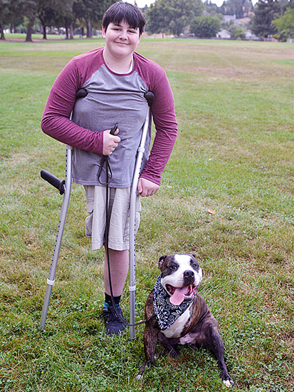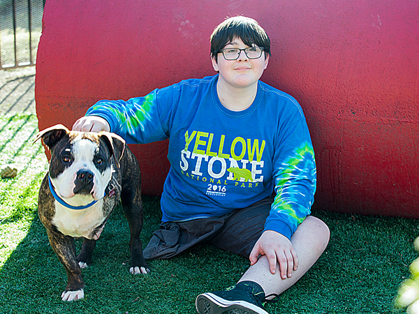 Logan, a pit bull terrier, had a front leg amputated. The animal was at the Front Street Animal Shelter in Sacramento and was looking for a home.