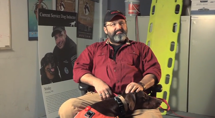 Veteran Terence Kramchynsky (pictured below) said a service dog helped him manage his PTSD and depression, and even credits the animal with saving his life.