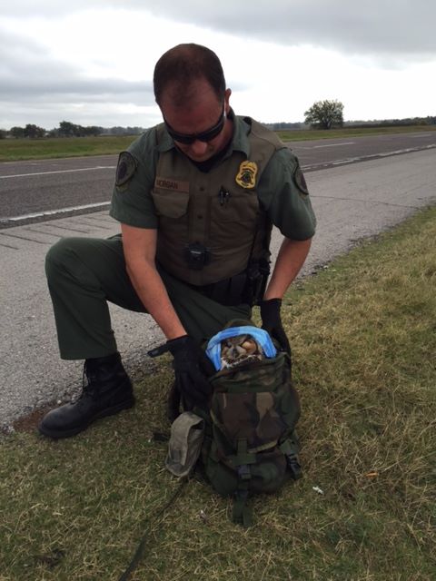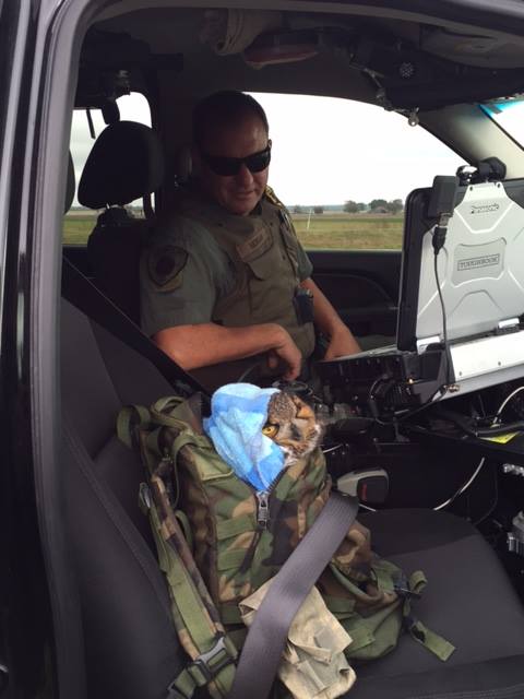 Sgt. Morgan carefully placed the owl in a backpack.