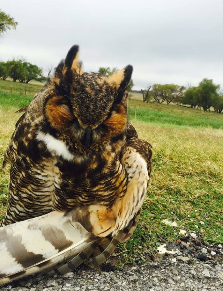 WildCare Oklahoma now reports that a great-horned owl Sgt. Darin Morgan rescued on the side of I-35 is on the mend.