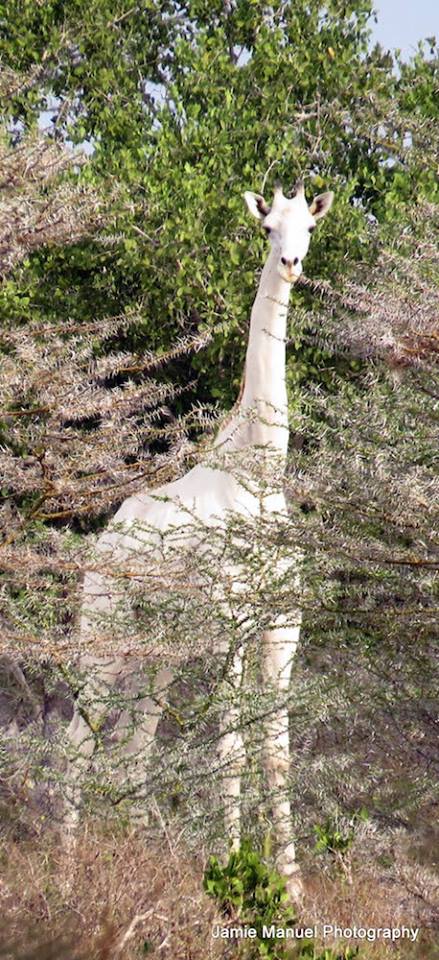 Rare white giraffe spotted in Kenya in 2016. Jamie Manuel Photography