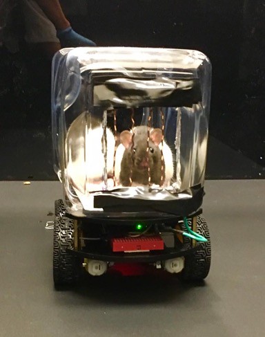 Seventeen rats were trained to drive these ratmobiles in rectangular arenas.