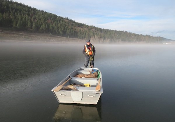 The deer was placed in the boat and taken safely to shore.