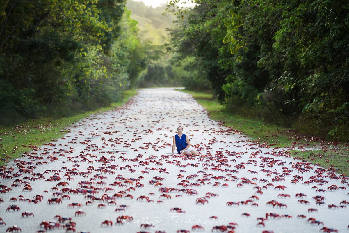 The red crab migration is underway blanketing the landscape in crimson.
