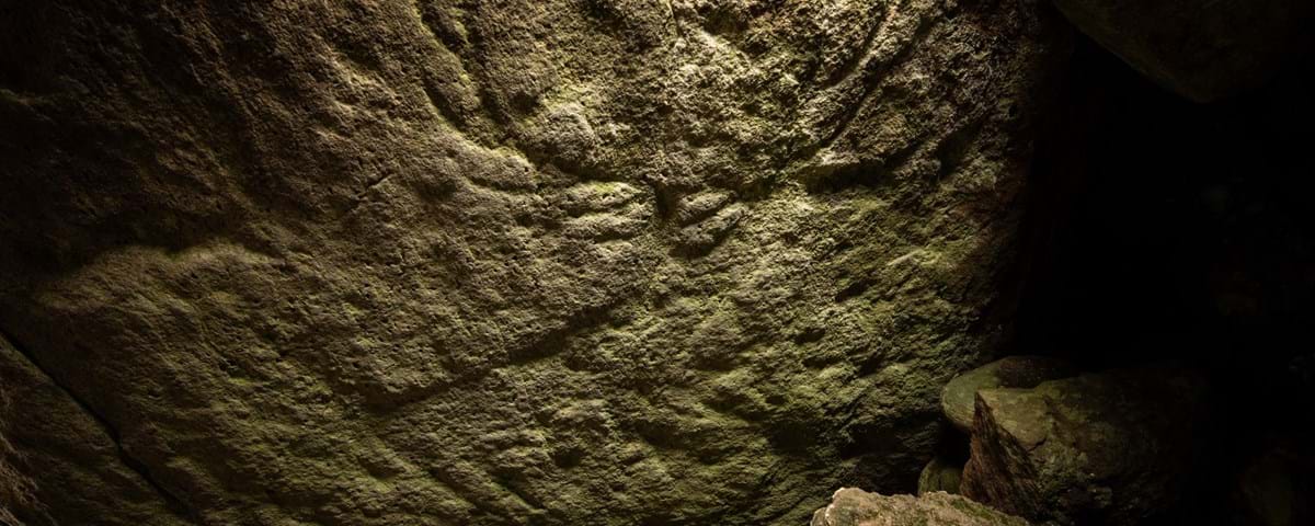 The Cairn, which is a Property in Care of HES, is 30m wide and contained three stone burial chambers, or cists. The third cist, where the carvings are located, was dug directly into the ground, lined with drystone cobbled walls and capped with an unusually large stone over 3.5m long. The remains of up to 10 individuals, some cremated, were also discovered here when the site was initially excavated in the 1860s, as well as artefacts including a whetstone, a greenstone axe and a flint knife.