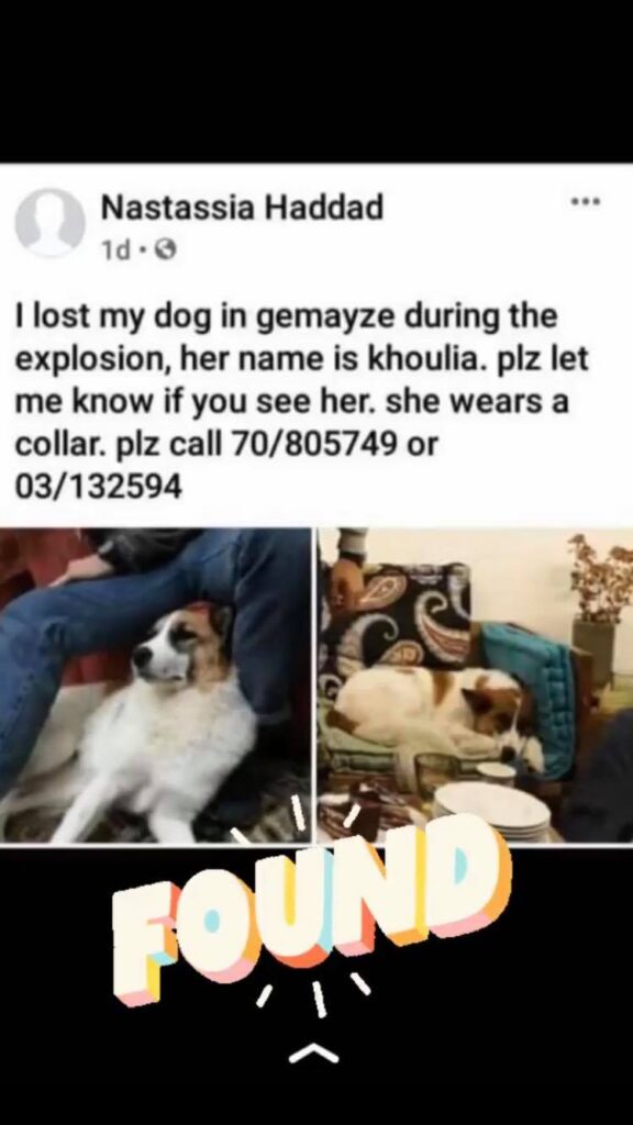 “We have had more than 40 people working in teams of two or three. So far, we found about 20 lost animals,” Animals Lebanon told Storyful.
