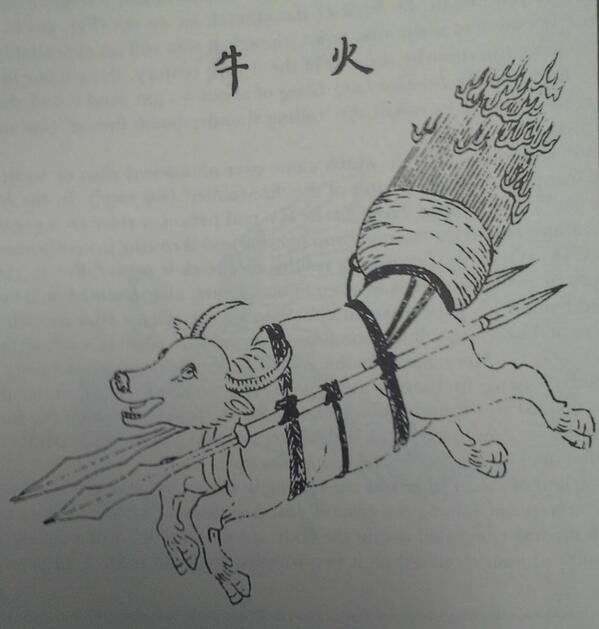 There’s no evidence that animals were used in such fashion, according to Fraas. Of course, humans have long used animals in warfare. The Trojan Horse. Actual horses. Dogs. Elephants. And now, Fraas has been flooded on Twitter with other ancient evidence of our attempt to turn animals into weapons, such as this 11th centre Chinese fire ox.