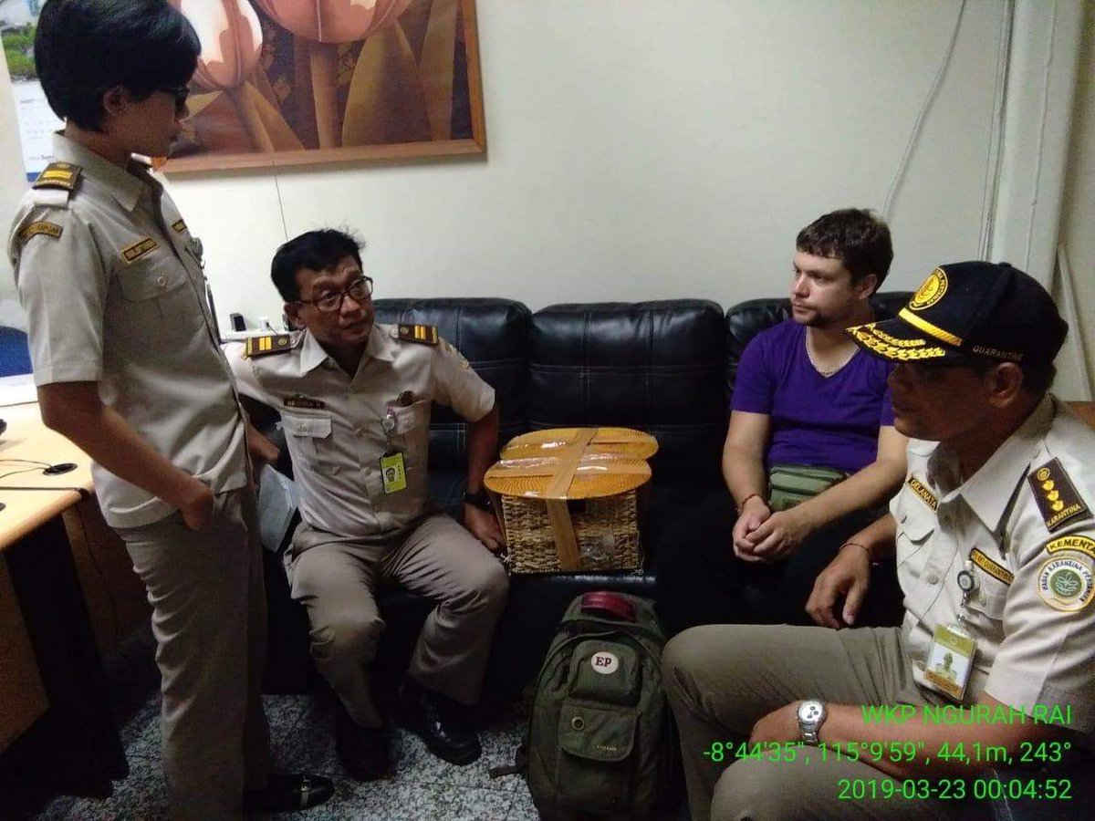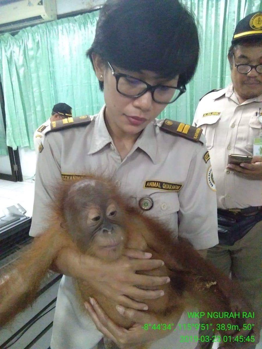 (22/3)- Petugas @KarantinaDPSR & Avsec gagalkan penyelundupan orang utan yg dibius & dimasukan dlm keranjang kecil. Perlakuan sadis ini sengaja dilakukan olh WNA berkebangsaan Rusia inisial ZA. Selain itu jg didapati tokek 2 ekor dan kadal 5 ekor yg akan diselundupkan. pic.twitter.com/jtu4098aaL