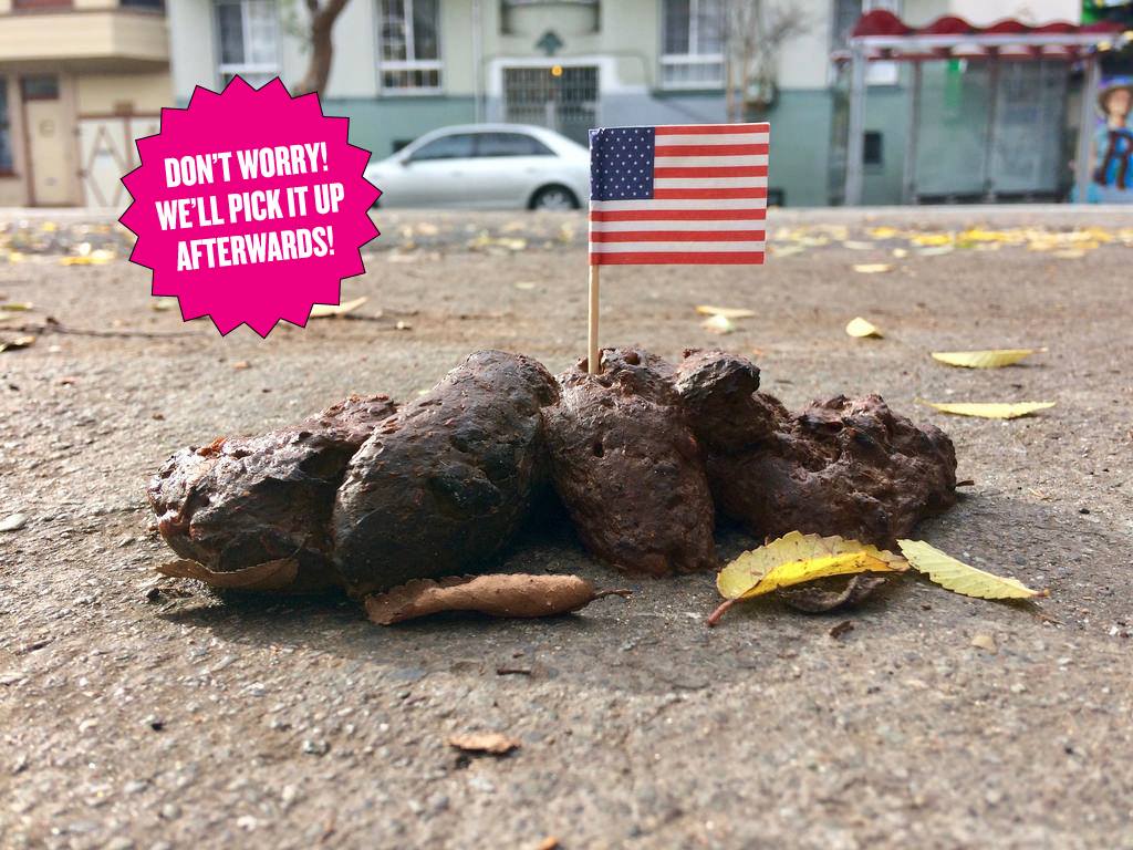 A plan to use Crissy Field in San Francisco as a dog poop zone for a Saturday meeting point between alt-right and counter protesters has been turfed turd!