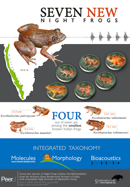 “Our detailed morphological study supports the recognition of seven new Nyctibatrachus species, which can be reliably differentiated from their relatives on the basis of skin texture, dorsal folds and markings, skin colour, body shape and size, finger and toe tip morphology, and degree of webbing,” the authors wrote.