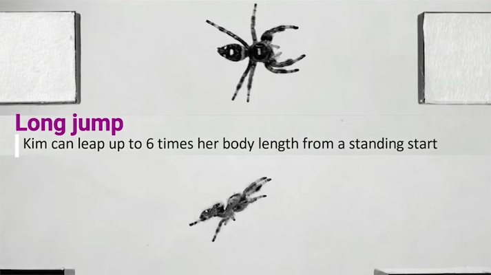 The findings have just been published in the journal Nature Scientific Reports demonstrating the athleticism of one particular Regal Jumping Spider, named Kim, as she leapt from one platform to another in impressive fashion.