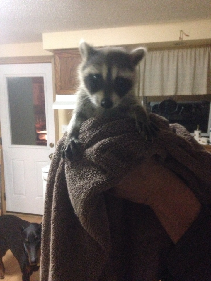 “Went to clean up the mess lifted the pillow and found a coon! really?” she added.