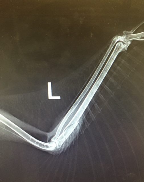 “We changed his bandage again last night and the wing is feeling stable and the swelling has gone down. He is alert and becoming more active, and increasingly interested in food however is not yet eating on his own,” Salthaven said in an update Saturday.