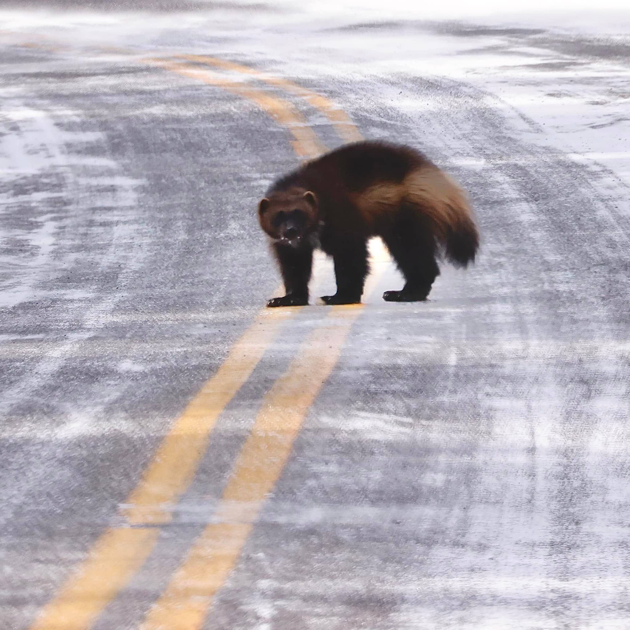 “The wolverine was curious for a bit,” Lyons added. “It jumped onto the snow berm adjacent our lane twice and returned to the road to size us up as our vehicle was stopped, idle.”