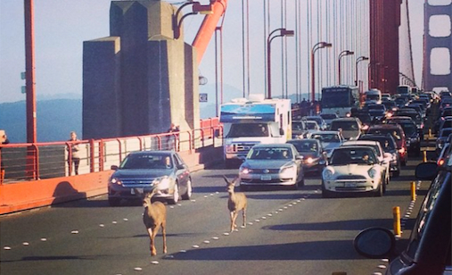 Deer stop traffic – and blow minds – on the Golden Gate Bridge September 6, 2014 California commuters were stopped in their tracks Friday afternoon as two deer made their way across the Golden Gate Bridge. The animals, which trotted across the… Continue Reading