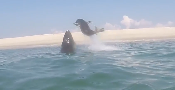 Great white shark jumps for leaping seal August 20, 2015 Researchers have captured some incredible images of a white shark’s attempt to make a meal out of a seal. This failed predation attempt took… Continue Reading