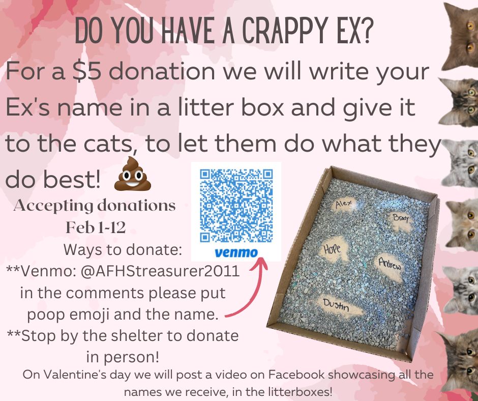 Crappy ex? Ohio animal shelter will write your ex’s name in litter box for Valentine’s Day February 13, 2023 Animal shelters are always coming up with ideas to grab attention and raise funds. An Ohio animal shelter is offering a plan that may… Continue Reading