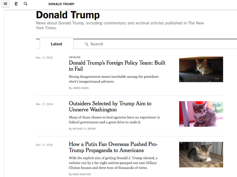 Pussy cats are (virtually) attacking Team Trump – and it’s hilarious December 17, 2016 Team Trump is facing a two front lashing from cats of the internet. Google Chrome has added an extension to its brewer for those who are… Continue Reading