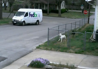 Excited dogs watch as FedEx truck rolls away from helpless driver April 4, 2014 Exited dogs run down a residential fence line as a FedEx delivery man pulls around the corner and down their street. Tails wagging in… Continue Reading